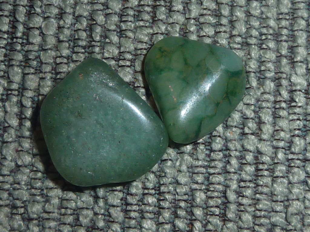 Mirka nevie, mne pripomínajú aventurín. Mám totiž pocit, akoby v nich bol taký striebristý trbliet. Mirka môže skontrolovať a potvrdiť alebo vyvrátiť… Ten pravý kámo mi pripomína aj jadeit, ale ľavý je taký nejaký… aventurínový 😛 …