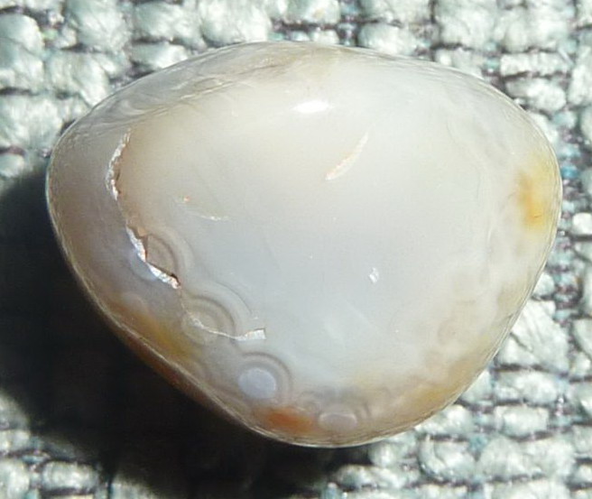 Kámo botswanský achát. Prekrásny, ako zebrička! Achátové sú tie zákrutky na bielom, kam sa opiera svetlo, akoby “očká”. A to tenké vrstvenie je typické pre botswanský achát.