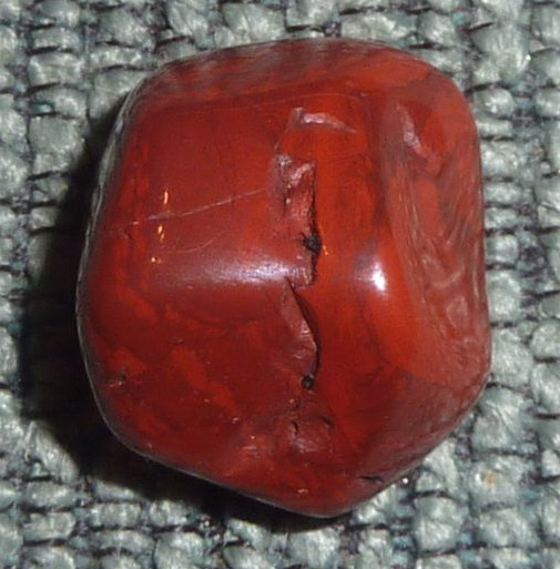 Mirka vraví, že červené Tigrie oko. Ja neviem… Nevidím v tom tie vlákna, ktoré sú pre Tigrie oko typické. Mne to vyzerá na červený jaspis. Aj tá hrčkavá štruktúra v pravom obrázku od stredu ľavej strany nadol mi pripomína jaspis.