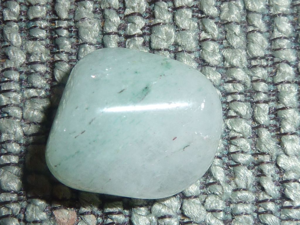 Mirka vraví: opál alebo slnečný kameň alebo karneol. Na to, aby to bol slnečný kameň, by musel mať vnútri trblietky alebo vlákna. To sa mi nezdá. Ten záblesk na ľavom obrázku je totiž podobný aj v tom aventuríne, takže to bude asi odraz svetla.