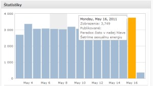 🙂 Zdá sa, že kombinácia správy od anjelov a šetrenia sexuálnej energie zabrala… Obe bodovali nad 100 pozretí v ten deň a tak sme včera mali zasa supersonický deň a prerazili sme druhýkrát hranicu 3.500 pozretí… a zvýšili sme latku na 3.749!