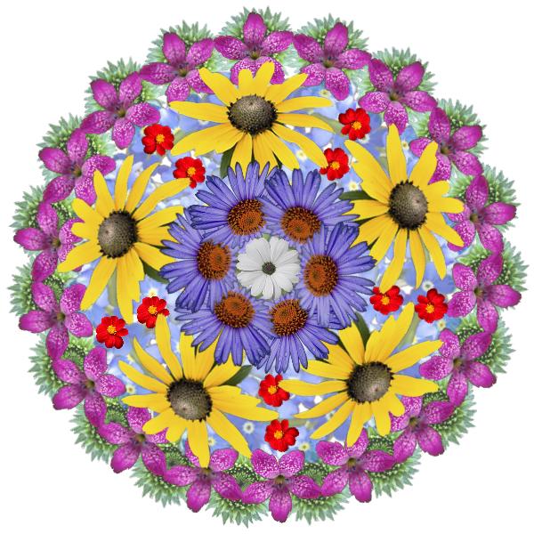 A keď už som zasa otvorila tému mandál, tak ešte pridám zopár pokusov z posledných dní, kedy som sa hrala najmä s kvetinkami: