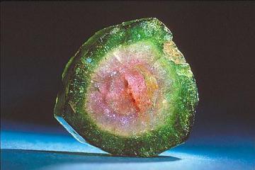 Melónový turmalín: Tento dvojfarebný turmalín symbolizuje protiklady ženského a mužského princípu (jin-jang). Ide o dokonalú rovnováhu dvoch opačných síl. Na jednej strane duša, pasivita, inštinkt a pasivita, na druhej strane  duch, aktivita, rozum, obidve v neoddeliteľnej jednote. Jedno bez druhého nie je možné v našom živote. Učí nás žiť vo vzájomnej úcte, tolerancii, pochopení, priateľstve a láske. Rovnováha v polarite je tiež zmysel liečenia duševných porúch. Hlboko zakorenené pocity viny, rozdvojenie osobnosti či iné parazity, ktoré nám bránia žiť šťastne  sú melónovým turmalínom jemne vytiahnuté na povrch a my ich potom môžeme spracovať. Učí nás aj nezávislosti a sebakontrole a zdravému úsudku. Uľahčuje nám prechod od strnulosti a voľnosti a viac potom otvorený zmenám a stávame sa flexibilnejšími. Ide o super aktivátor srdcovej čakry, kde posiluje lásku a priatelstvo. Na fyzickej úrovni lieči nervy, pomáha pri obnove buniek a je dobrý aj na zuby. Lieči stres a pomáha nájsť radosť a šťastie v každej situácií.