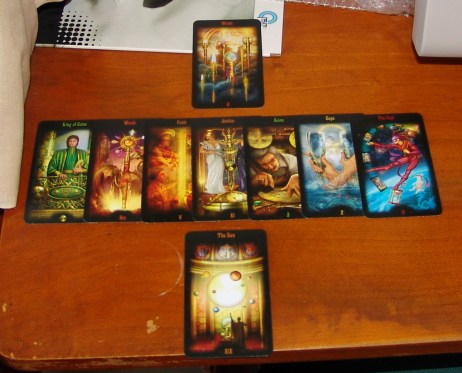 Fakt je, že Slnko môže znamenať aj len “vonkajšiu žiaru a vnútornú tmu”, ale viac sa mi zdá, ako keby v tejto pozícii hovorilo niečo o tom, aby sme nezaspali na vavrínoch. Matrioshka, Univerzum sa asi bude musieť vzdať odmeny tvojej sladkej vďačnosti… 😛