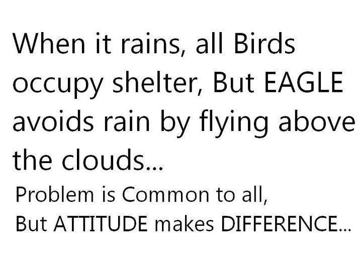 “Keď prší, všetky vtáky hľadajú úkryt, ale orol sa vyhýba dažďu tým, že lieta nad dažďovými oblakmi… Problém je pre všetkých rovnaký, ale prístup je rozdielny…”