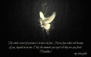 “Celé tajomstvo existencie je nemať strach. Nikdy sa neboj, čo s tebou bude, nerob sa závislým na nikom. Len v tom okamihu, až zamietneš všetku pomoc, budeš slobodný.” — Budha