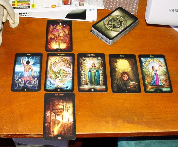 Tak, tento týždeň som parádne nestíhala a povedala som si, že nemá zmysel robiť výklad aj spätne, takže budeme mať “skrátený” výklad – od dnes. A musím priznať, že som miešala veľmi dôkladne a niekoľkonásobne, pretože sa mi zdalo, že stále vychádzajú tie isté karty… no, moc to nepomohlo, Veži sme sa ani napriek tomu nevyhli! 👿