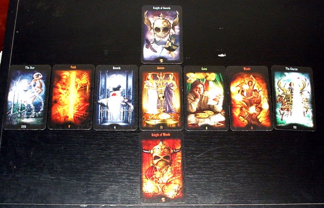 Každý deň sa dá interpretovať ako “šance” (pozícia 1) a “ohrozenia” (pozícia 2). A zasa máme nejako veľa kariet Veľkej Arkány vo výklade, takže sa ide na veci zásadné, priam osudové 😉 …