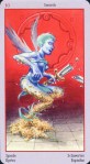 Je založený na Rider-Waite symbolike aj keď to niekedy nie je jasné z obrázka o čo ide.