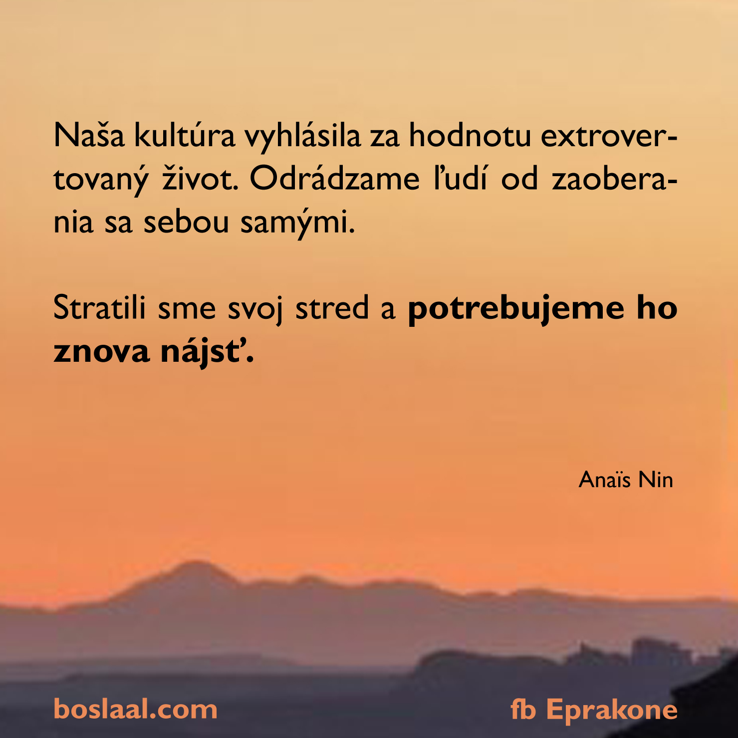 Odučili sme ľudí byť sami so sebou a necítiť sa pritom osamelo. Odučili sme ľudí mať vo vlastných očiach hodnotu aj vtedy, keď nám ju nepotvrdzuje zástup náhodných známych, ktorí sa zaujímajú o tú istú vec, čo ja.
