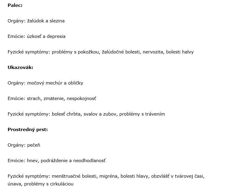 Článok sa nedal skopírovať ako text, takže som vybrala len tú zaujímavú časť – ktorý orgán s ktorým prstom.