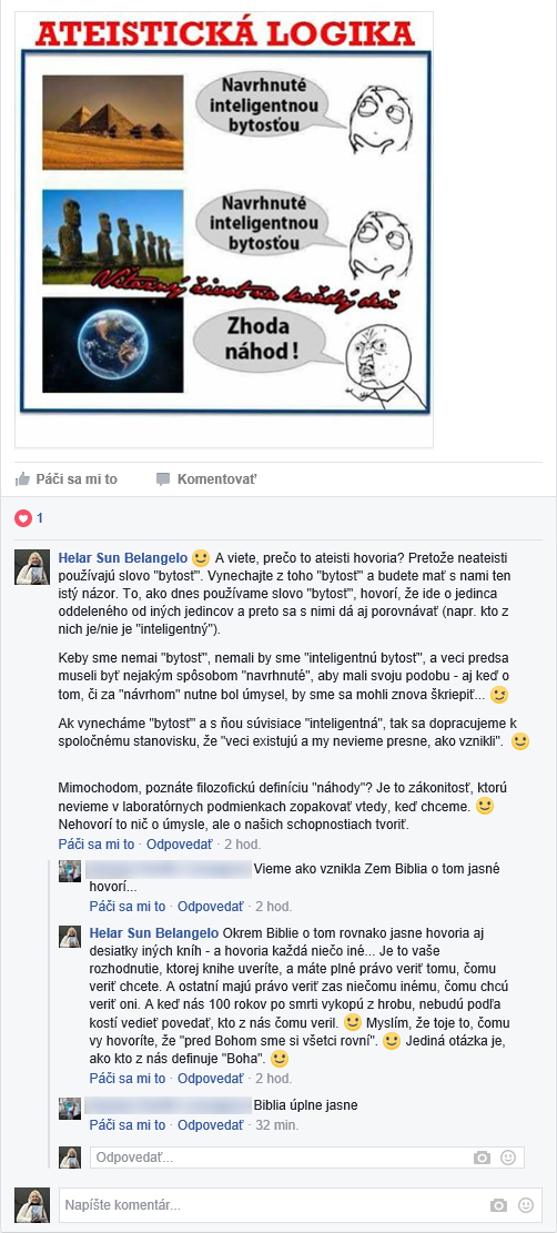 Situácia začala tým, že nejaký chlapík zverejnil obrázok “ateistická logika”.  (Vlastne je zaujímavé, ako sa ľudia vždy vyjadrujú k tomu, o čom nemajú podľa vlastného presvedčenia ani šajnu: veriaci k ateizmu, vegetariáni k jedeniu mäsa, farári k sexu a podobne…)