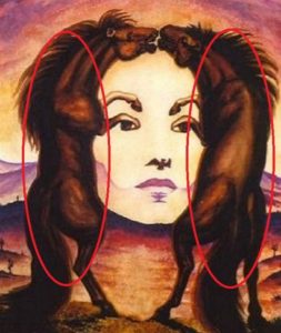 Ľudia, ktorí na obrázku vnímajú kone, majú silný temperament a veľmi silno prežívajú lásku. Milujú milovať a pracujú na svojich vzťahoch, ale pričasto príliš testujú svojich partnerov a tým si často kazia vzťah.