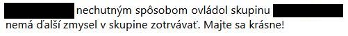 P.P.S.: Veci sa dali do pohybu… Ten pán, proti ktorému sa “spikla” skupina ľudí, ich dráždil aj naďalej. Až sa jedného dňa ozvala jedna z členiek: