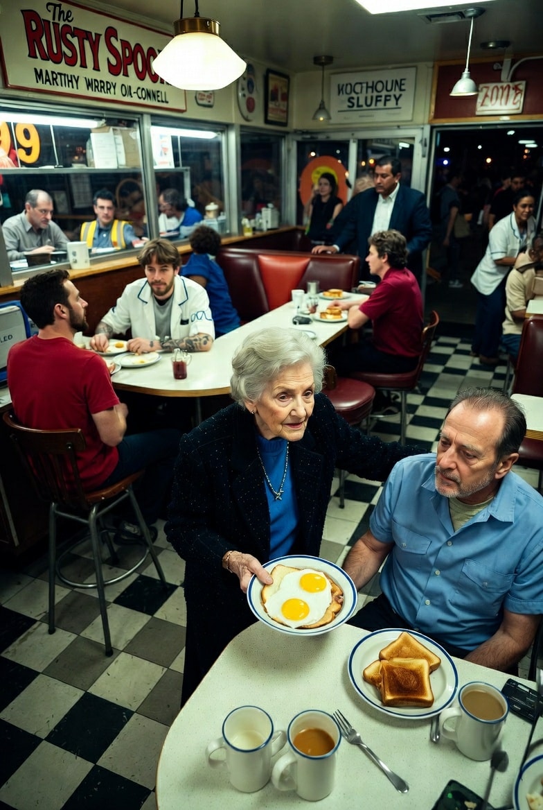 „Kuchyňa je zatvorená, pani,“ zamrmlal a utrel si oči handrou. „Žiadne vajcia. Žiadna nádej.“