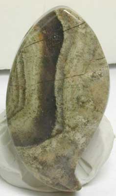 Toto je austrálsky pralesný jaspis vo forme kabošónu s viditeľným „okienkom“ quartzu.