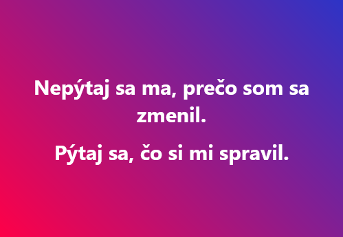 Včera som narazila na fejsbúku na citát, o ktorom nemôžem vyhlásiť, že je hlúpy. Nie; je to tak. Lenže okamžite ma v ňom niečo zarazilo (čo to vypovedá o mne? 😛 ) – vyjadrenie “som, ako by mali byť všetci ľudia”. Vyhlásenie seba za etalón “normálnosti” (alebo čohokoľvek iného, pretože táto sebainscenácia funguje s akoukoľvek inou témou). Čítať ďalej