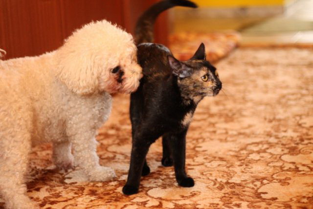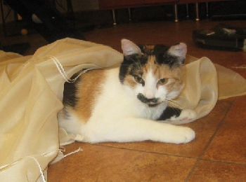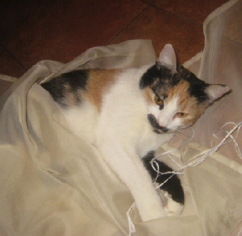 🙂 Doma mám delenú domácnosť – na prízemí Cicu a Lassitera (Cice som práve dala dole vestičku) a hore v spálni Gayušku. Spala pri mne a na mne (doslova a do písmena), nechá sa babrať a pomaly si na mňa už privykla, len zatiaľ nežerká. Ale má dosť podkožných zásob, takže sa až tak veľmi nebojím. Ešte zajtra bude apartheid (nech na všetkom zanechá svoju pachovú stopu) a potom sa dvere otvoria a prvé kontakty budú dovolené. 🙂