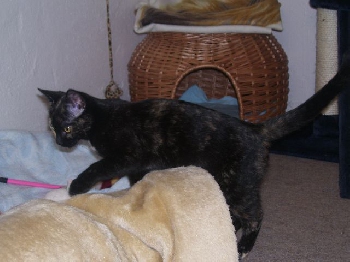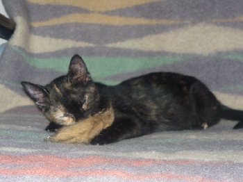 U Berušky som nemala šťastie, pôvodnú “mačiatkovskú” stránku zrušili skôr, než som si stiahla obrázky. Možno si spomínate, že som raz videla po izbe ísť “čiernu mačku bez očí”. Samozrejme, okamžite som sa navesila na Mačky SOS a začala som hľadať. A u Berušky bol jeden obrázok, ktorý napriek očiam a svetlej škvrnke vyzeral presne ako tá mačka, čo som videla… Žiaľ, nemám ho.