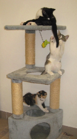 Ale ako každý cicahauz, aj domček-rukavička má miesto pre viacej mačiek. A tak sa domček-rukavička začal obzerať po kamarátoch pre našich dvoch obyvateľov. I našiel hneď dvoch – cicušku Gayušku a cicušku Berušku. (Brrr, už musím prestať; tie zdrobneliny už pomaly odkvapkávajú ako med! 👿 )