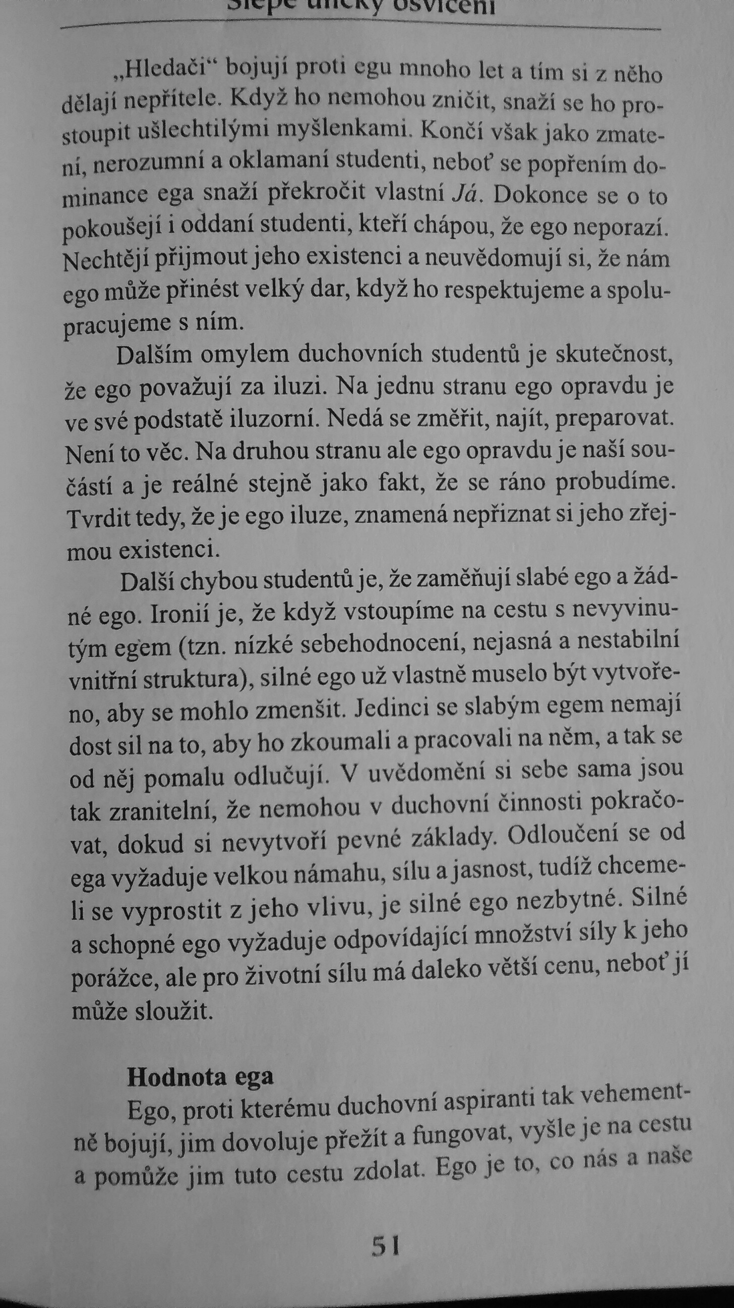 Lenže, ľudkovia, veci sa majú inak… Práve to ego, ktoré tak nenávidíme, nám umožňuje vnímať, čo sme ešte my a čo už nie sme my, ale niečo iné, s čím možno narábať, premiestniť to, zjesť to, dýchať to, vyvaľovať sa v tom, hrať sa s tým a podobne… Ego nám umožňuje Čítať ďalej