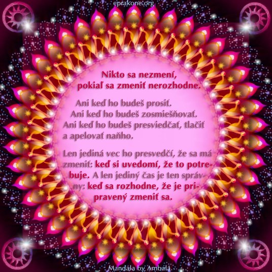 Spolu s Ambalou sme dali dokopy nový projektík: mandala by Ambala 🙂 . Každú stredu prinesieme nejakú peknú mandalu od Ambaly, urobenú vyslovene pre túto príležitosť. Dnešná je na tému: nenúť nikoho zmeniť sa.
