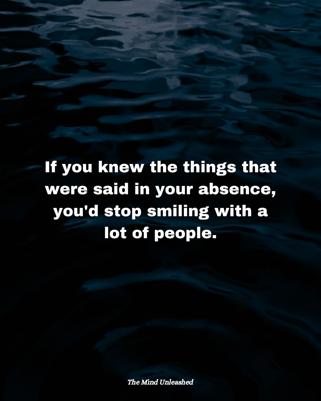 Keby si vedel, čo za veci hovoria v tvojej neprítomnosti, prestal by si sa na mnoho ľudí usmievať.