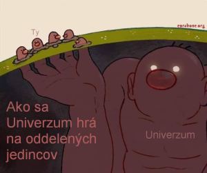 Obyčajný človek spiritualitu vyhľadáva preto, aby si vniesol do chaosu poriadok. Vezme jedno učenie, vrhne sa naň a pomocou neho vysvetľuje všetko. A ak vysvetlenie nie je evidentné, siahne po predstave vyššej moci (každá organizovaná spiritualita ju má) – “Boh tak chcel”. A ty, synu, si trhni nohou, pretože niekto iný povedal, ako to bude. 🙂