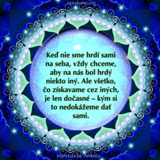 Dnešná mandala by Ambala nám pripomína, že sa nemáme robiť závislými na ocenení okolia, ale si máme sami dať to, čoho sa doprosujeme u iných: