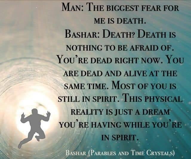 Bashar: Smrť? Smrti sa netreba báť. Si mŕtvy práve teraz. Si mŕtvy a živý súčasne. Väčšina z vás je ešte stále v Duchu. Táto fyzická realita je len sen, ktorý sa vám sníva, kým ste v Duchu.